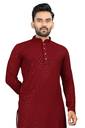 This traditional Indian kurta pajama set includes a top (kurta) and a bottom (Churidar). Loose fitting sleeves and slits along the sides allow for an easy fit and let air circulate freely through the garment. The pant included in this kurta pajama set has a relaxed fit through the seat and legs for absolute comfort. regular comfortable fitting makes it a great wear.