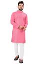 A cotton kurta pajama set for men is a traditional Indian outfit made from cotton fabric. It typically consists of a kurta (long shirt) and pajama (loose-fitting pants).