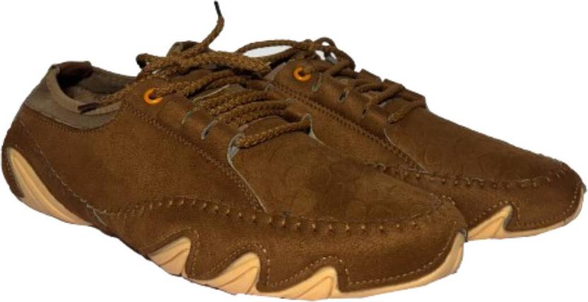 Step into comfort and style with these sophisticated casual suede shoes. The Windsor tan colour paired with a contrasting beige sole creates a versatile look perfect for both casual outings and semi-formal occasions. These lace-up shoes feature a distinctive moccasin-style design with decorative stitching that adds character to their appearance. The suede upper provides a premium feel, while the well-crafted sole ensures comfortable walking. The shoes showcase an eye-catching zigzag pattern detail on the sides, elevating their visual appeal. Their classic silhouette makes them an excellent match for jeans, chinos, or casual trousers. The lace-up closure allows for a customised fit, while the rounded toe design offers ample room for comfort. These shoes strike the perfect balance between casual comfort and refined style, making them a valuable addition to any modern wardrobe. They're ideal for daily wear, weekend outings, or casual workplace environments where comfort meets style.