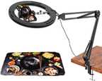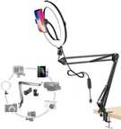 BROLAVIYA 10 inch Ring Light With Overhead Video Stand 1/4" Male Adaptor For Camera Mobile Holder