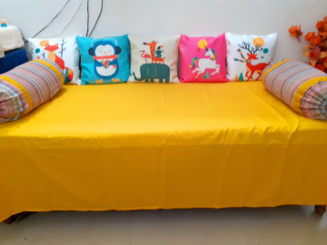 Fabric is lovely. Colour is also very bright as in the image. I used it as a Diwan Bedsheet. Bolster covers and cushion covers are bought separately from Flipkart itself.