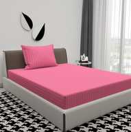 BROMWICK Microfiber Single Flat 300 TC Striped Bedsheet (Pack of 1, Pink)