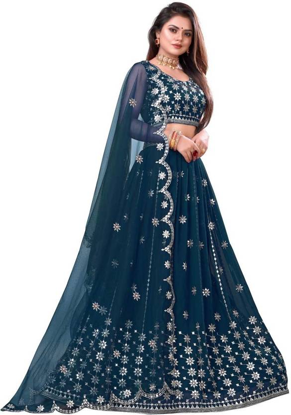Embroidered Attractive Party Wear Silk Lehenga choli has a Regular-fit and is Made From High-Grade Fabrics And Yarn. *Lehenga Fabric* : - Fox Georgette 7 mm Sequence Work. *Dupatta Fabric* : - Heavy Net, Sequence 7mm With Fancy Border (Dupatta size 2.25 MIter) *Blouse Fabric* : - Fox Georgette, Sequence 7mm Work *Lehenga Inner* : - Micro Silk *Blouse Work* : -Sequence 7mm Sequence Work, Embroidery Work, Zari Work. *Lehenga Work* : - Zari Work, Sequence 7mm Sequence Work, Embroidery Work, Zari Work. Top Kamar Less *Type* : Lehenga :-Semi Stitched, *Blouse* :- Unstitched *OCCASIONS* : - Festival, Party, Traditional, Wedding, Dulhan Lehenga , Bridal Lehenga, Marriage Special, Party Wear, Lehenga *Size* : -Free Size, Lehenga: Length-42" Inches Width-up To 42 to 44". Flair Bottom-up to 2.80 Mtr.