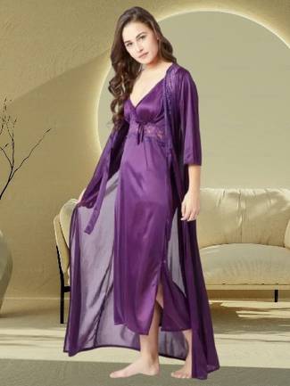 Women’s Satin Nighty Set – 2 Piece Nightwear Combo (1 Robe + 1 Long Nighty) | Elegant Sleepwear | Soft & Comfortable Satin Fabric