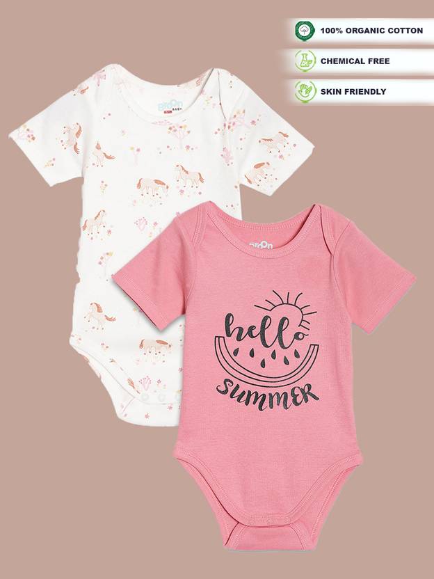 Broon Romper For Baby Boys & Baby Girls Casual Printed Cotton Blend (White, Pack of 2)