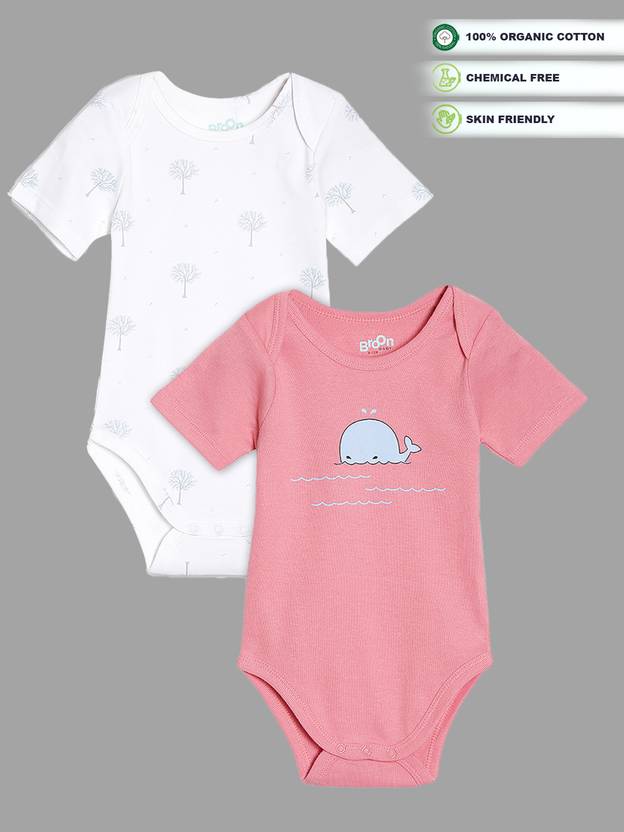 2 onesies featuring playful motifs and prints are a perfect choice for your baby. Produced from super soft Organic Cotton fabric these onesies come with a round neck and snap button closure across the crotch with a snug fit for your little one. These onesies are produced from Skin Friendly fabrics without any hazardous chemicals and are must have in your little one's essential wardrobe.