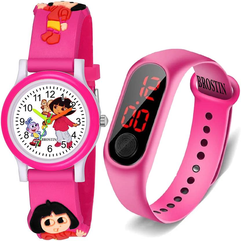 Digital Girls Pink Glowing Dora Watch/Pink Band Combo- For Girls