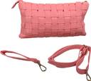 A Peach braided exterior design? No one could pull it off better than this bag. We’re pleased to introduce you to the gorgeous braided stylish hand bag. Exterior pattern paired with the classic thick edging. This lovely bag is perfect for ladies with plenty of femininity and class. Its compact size makes it easy to carry yet still makes bold statement with its gorgeous and intricate exterior pattern.One small handle and another Sling handle for two way use of comfort.