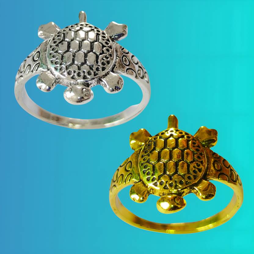 Turtle ring Pack Of 2 Kuber Ring Kachua Ring Randome Size Gold & Silver