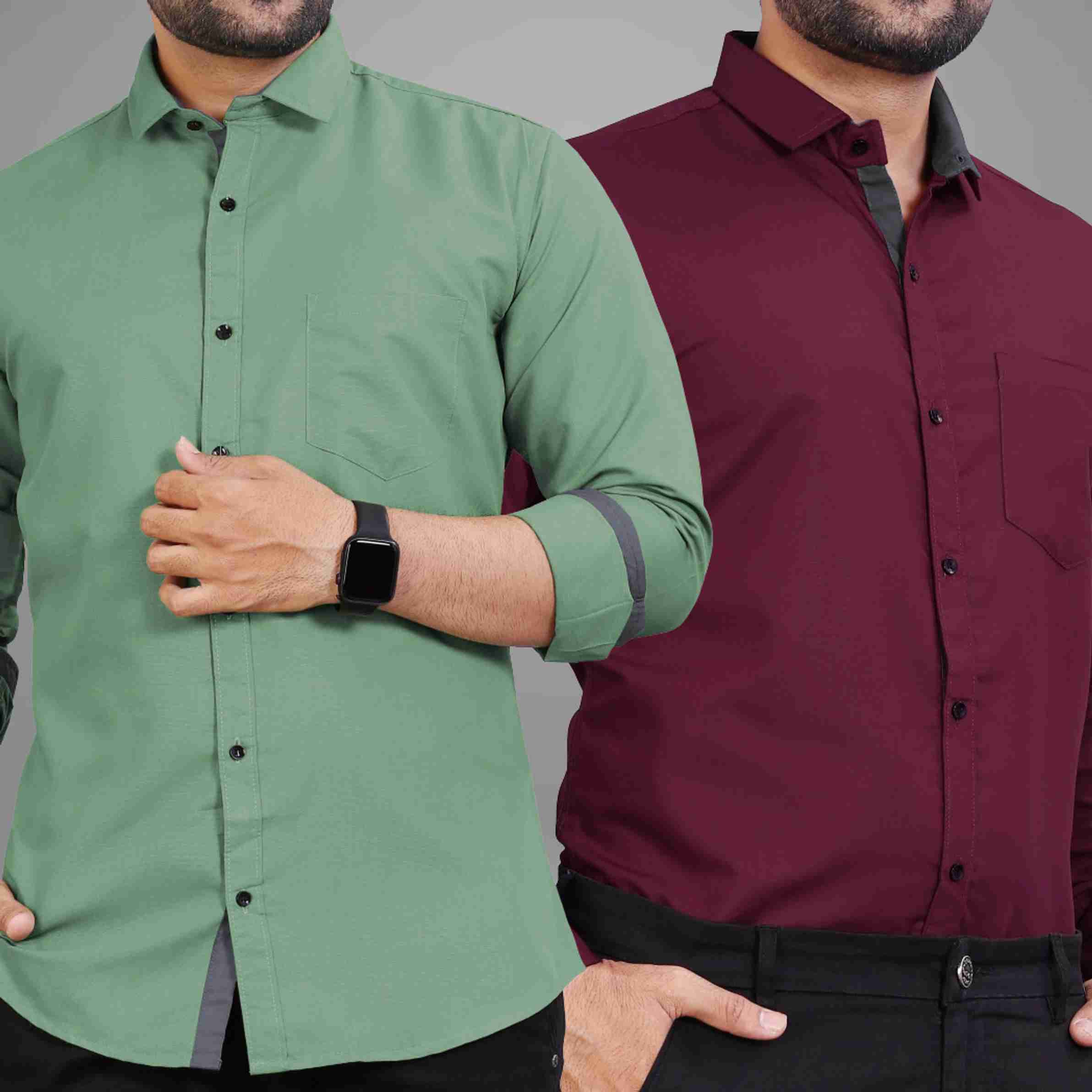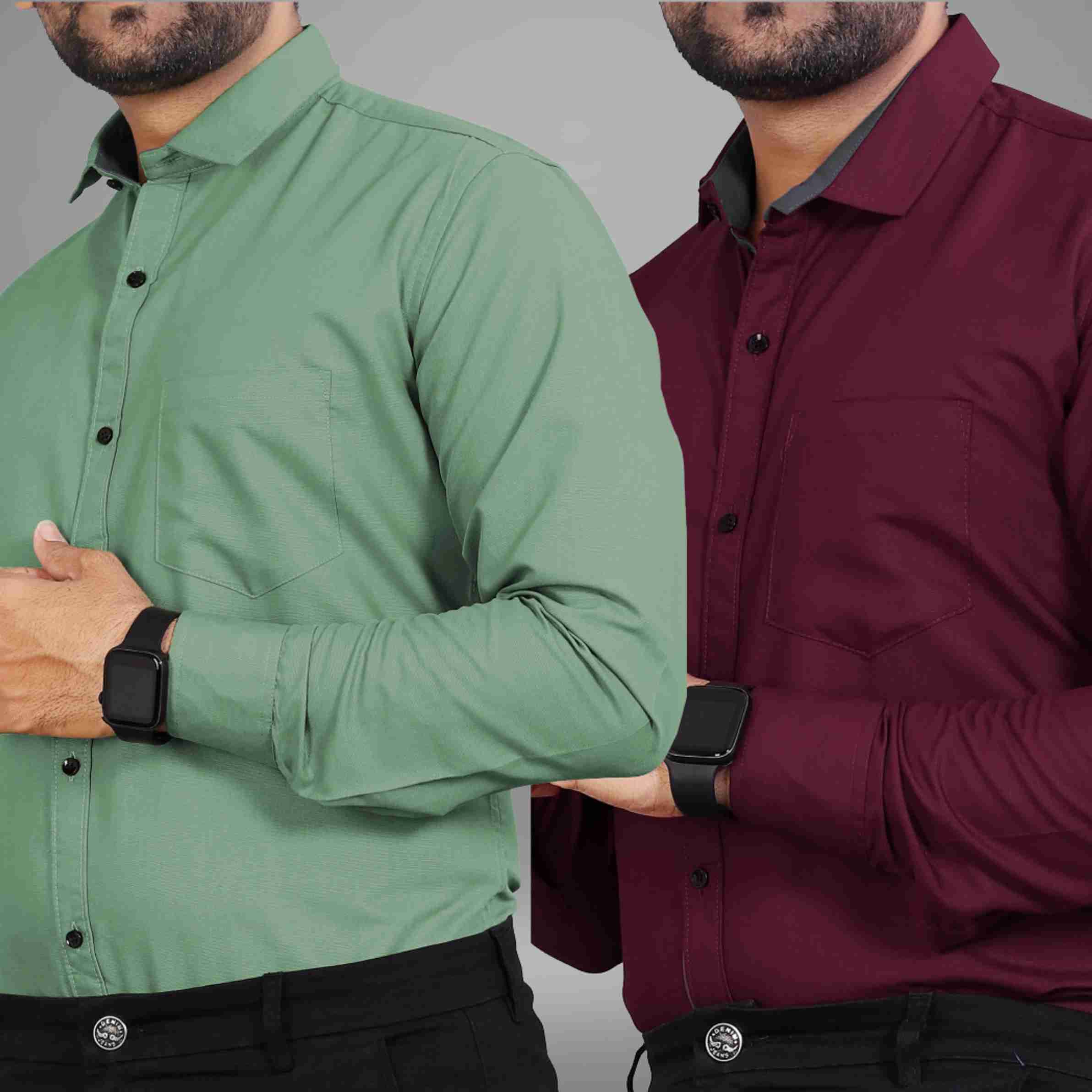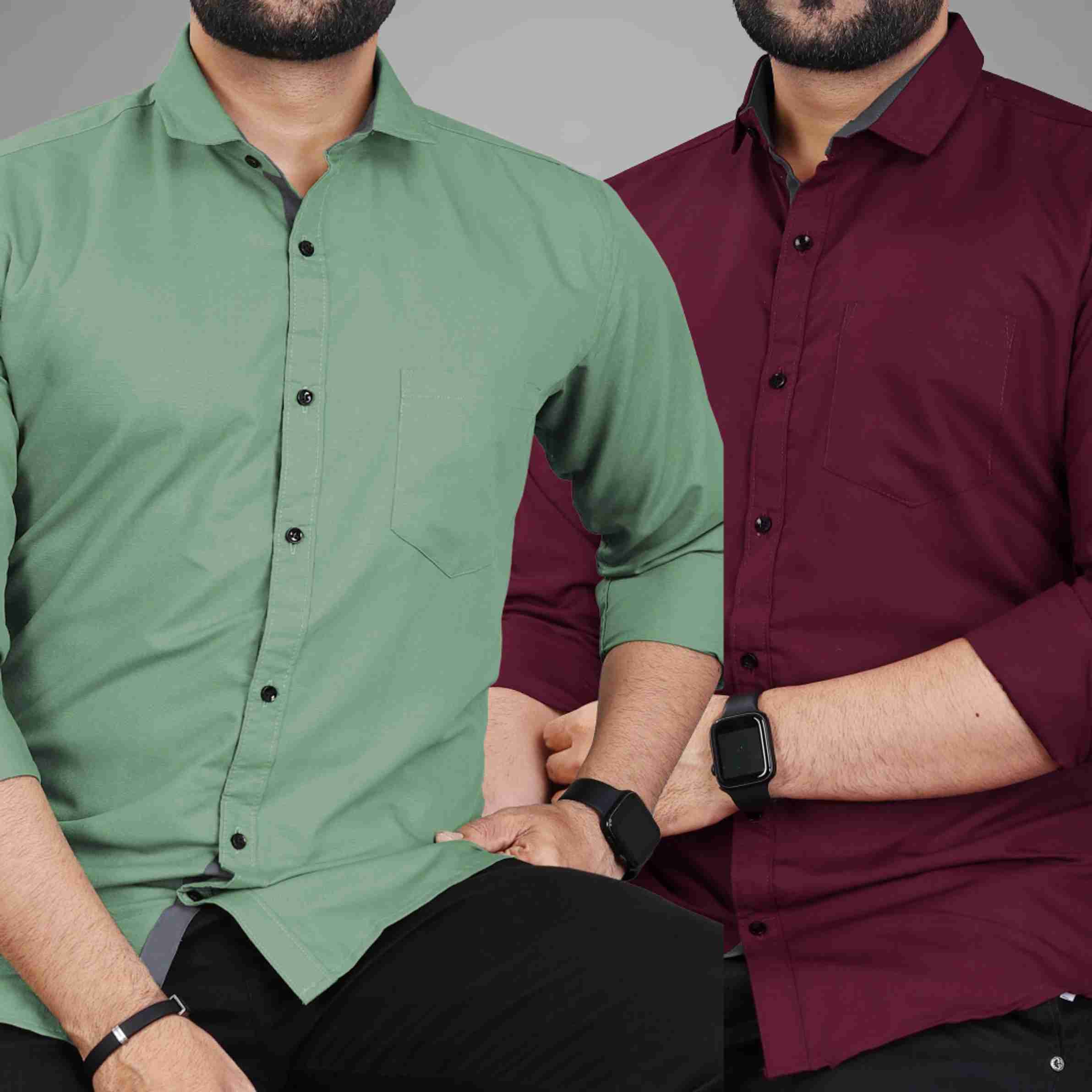 Men Regular Fit Solid Spread Collar Casual Shirt (Pack of 2)