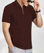 DEARISE Solid Men Zip Neck White T-Shirt