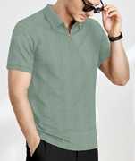 Men Solid Zip Ne...