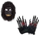 Brown Leaf Chimpanzee face Mask With Halloween Horror Gloves Set Horror Scary Prank Elders Halloween Costume (M)