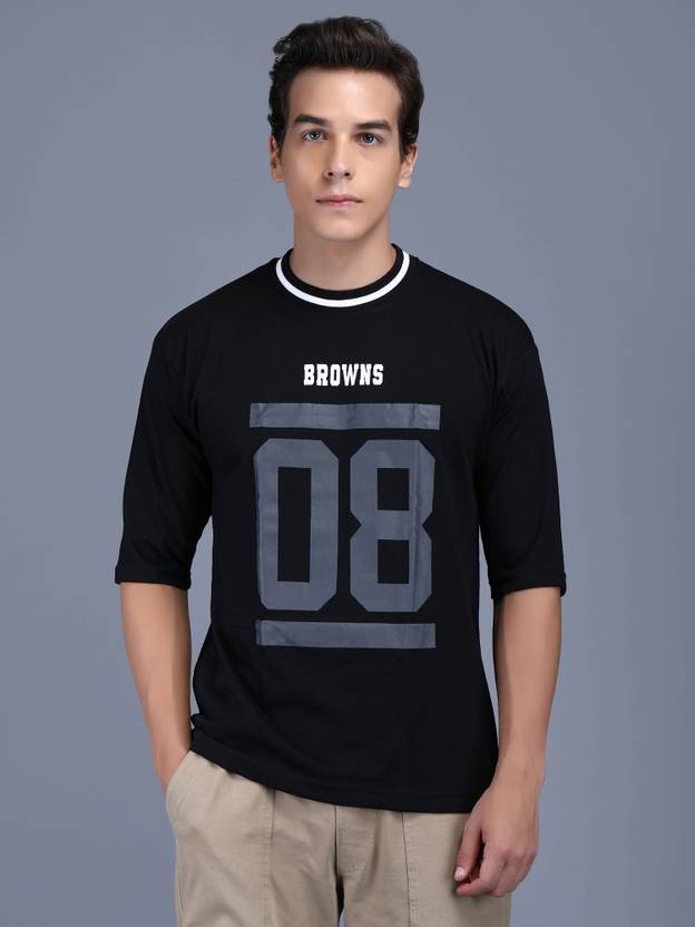 BROWN SKY Printed, Typography Men Round Neck Black T-Shirt