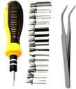 2-piece mini precision screwdriver set with case w/ tweezer, handle and torx, hex bits etc, Ideal for accessing fasteners in tight areas ,Non-slip studded handle , Non-slip tough shaft ensures greater comfort and convenience, All in one compact pocket-sized case for easy carry. Color may vary, For repairing laptops, mobile devices, and other precision items like wristwatches and eyeglasses, Screwdriver Set for DIY, Precision Screwdriver Set