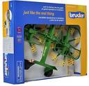The cantilever arms of the Krone hay rake can be folded up individually and the prongs rotate during travel. A fold-out support leg ensures stability. The Krone hay rake is suitable for all tractors of the Profit series (not included).; From the Manufacturer; Prepare your cut grass for baling with this rotary windrower! As you pull this rower along with any of the Bruder tractors, the two sides will rotate, causing their comb-like blades to spin around and collect your grass into neat rows. The sides fold up for easy storage.