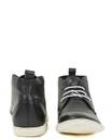 Round toed, Casual shoes with central lace up and hightop styling. Leather upper with synthetic suede overlays, small tab near the mouth. Striped outer cushion on anklet area for comfort. Lightly padded inner, soft tongue with a cushioned fotobed, branding at the heel and on the tongue.