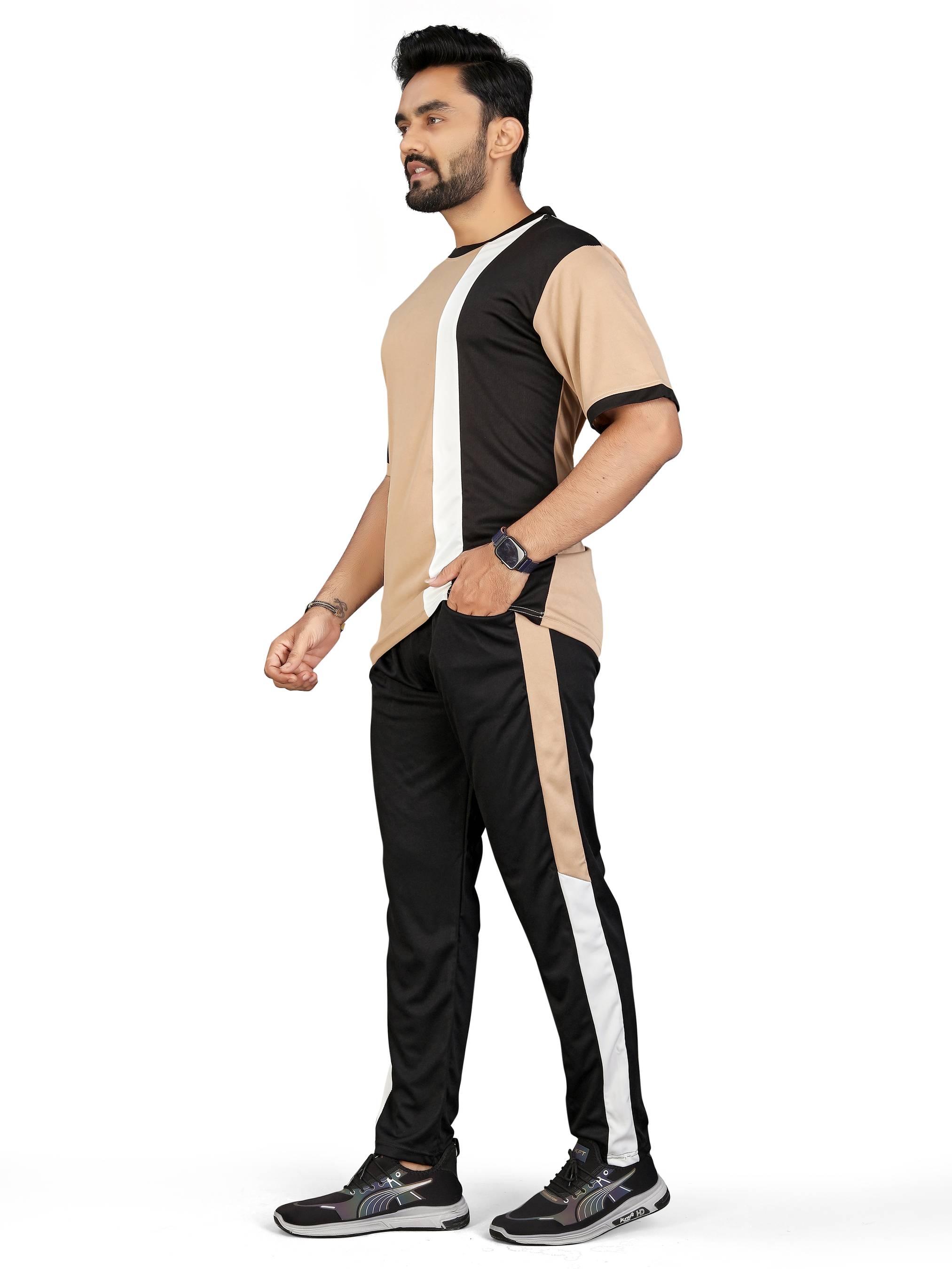 Round Neck :- This men's tracksuit includes a round-neck t-shirt, making it suitable for casual occasions. The simple rounded neck t-shirt offers a loose fit and comfortable sensation around the neck. Its design creates a balanced appearance, flattering various body shapes. Thanks to its adaptable neck form, it pairs easily with different bottom wear and outfit combinations