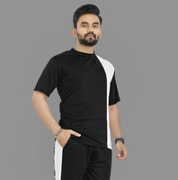 Sporting a round neckline and short sleeves, the T-shirt in this set ensures comfort while maintaining a modern silhouette. Moreover, the track pants come with up to two practical pockets ideal for securing small essentials during physical activities. Thanks to their elasticated waistband, these pants can offer a secure yet adjustable fit, ensuring comfort during all movements. Additionally, the slim fit enhances the overall look and feel, making this outfit suitable for active wear.