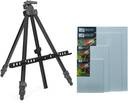 Brustro Artists' Portable Lightweight Metal Display Easel WITH 4 Size Brustro 100% cotton canvas boards 8"X10" , 10"X12" , 12"X16" , 16"X20" . Free weatherproof carry Bag . Brustro has selected the comprehensive range of artists' easels to make up a range of essential items to ensure that our customers have all they need to get started. Aluminum and metal easels are a good option for the artist that wants a lighter weight, and often more portable, alternative to bulky Display wooden easels. Our range of fine quality aluminum and metal artist Display easels ensures that we meet the specific needs and requirements of any artist, while providing firm support and long lasting service. The Brustro Artists Portable Lightweight Metal Display Easel is the most used portable aluminum easel ever made for any travelling artist, constructed of lightweight aluminium, offers one touch control for quick telescopic leg adjustment and complete with its own weatherproof carry case. Patented adjustable extra wide canvas clip and clamp-on top holds anything from panels to 1" wide canvases. It the perfect answer for travel and fold down small enough to be an excellent table Display easel too. It holds canvases from 15" to 32" in height and most widths, while the Display easel itself can fold to a convenient 22" size for easy transport. ITS NOT FOR WHITEBOARDS , ONLY FOR CANVAS BOARDS . Brustro is a registered trademark of Creative Hands Art Materials Pvt. Ltd. CANVAS BOARDS - An economically priced painting board, ideal for mediums like oils, acrylics and alkyds.These premium rigid, multi-density fiberboard panels are covered with 100% cotton and double-primed with 8 oz titanium acrylic. The Brustro artist canvas boards are warp resistant and acid-free. Brustro is a registered trademark of Creative Hands Art Materials Pvt. Ltd.