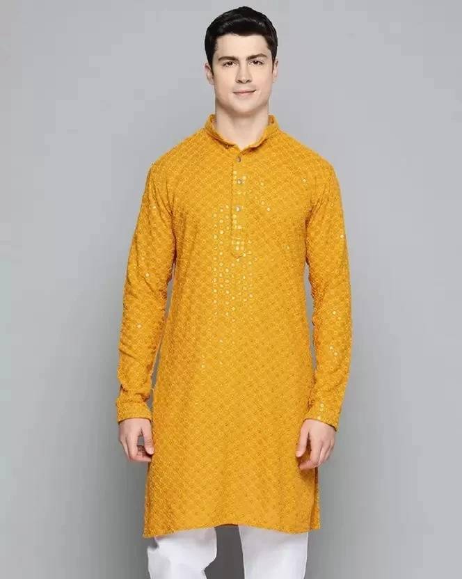 GRATIVO CREATION Men Embellished Straight Kurta (Yellow)