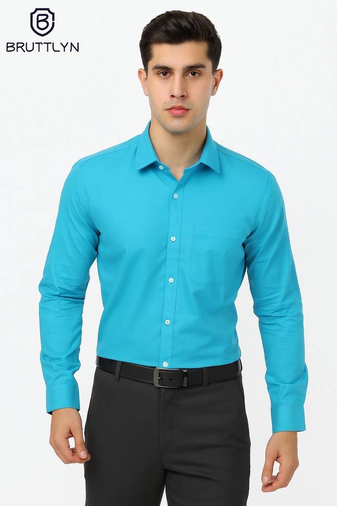 Bruttlyn Men Solid Formal Blue Shirt