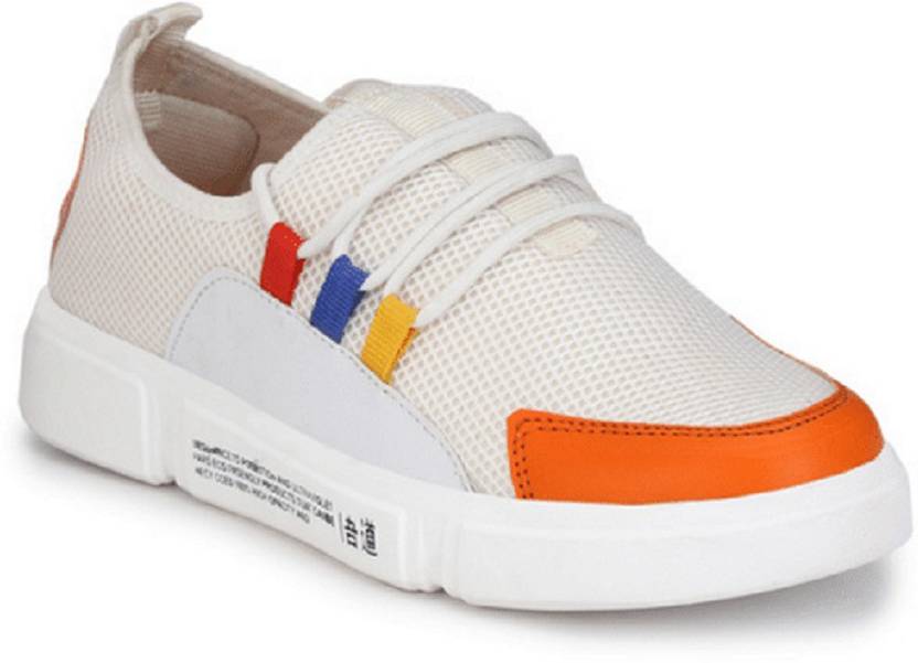fl01 Sneakers For Men (White, Orange , 6)