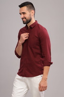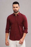 BS BLUE SQUAD Men Solid Casual Maroon Shirt