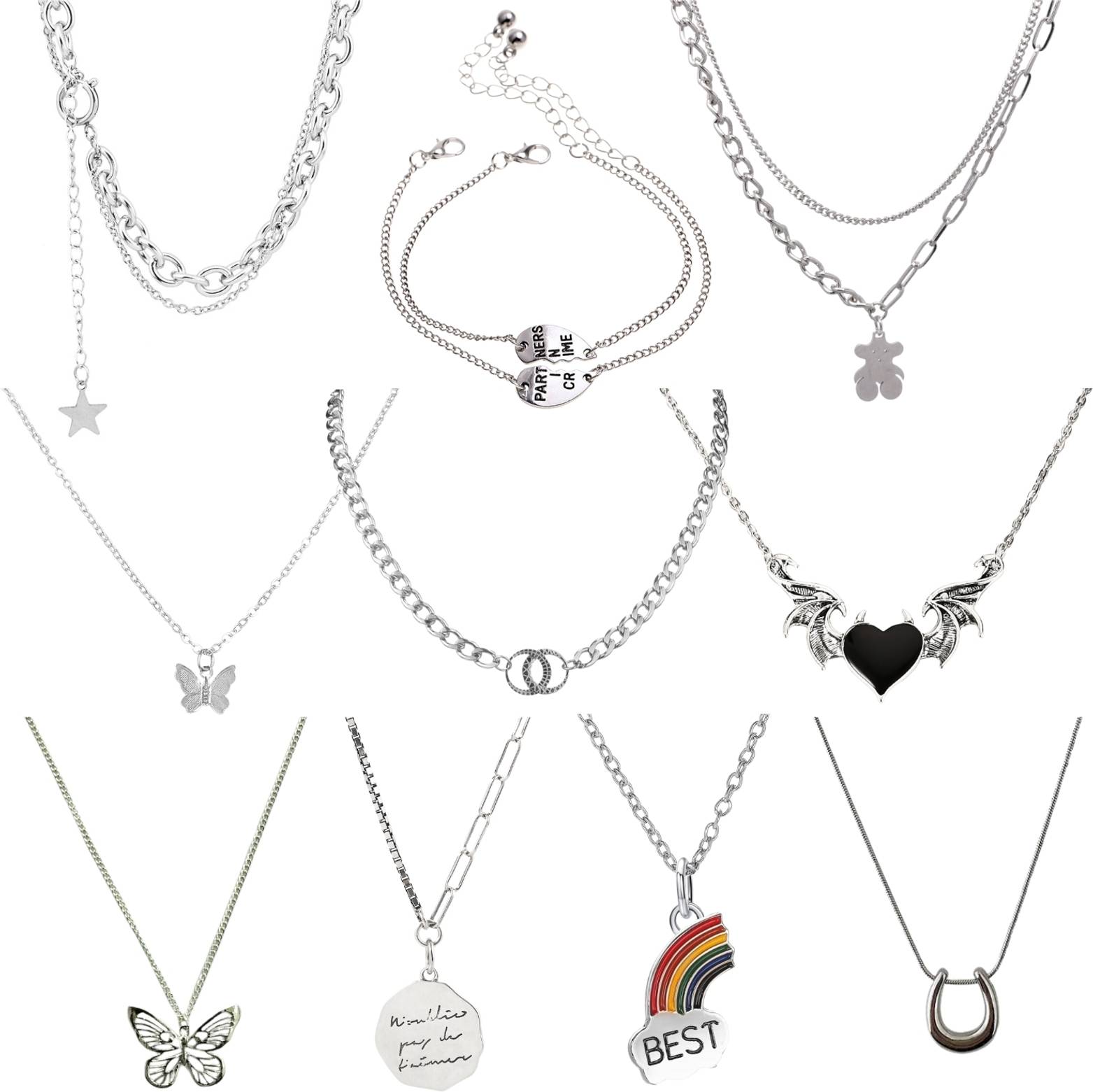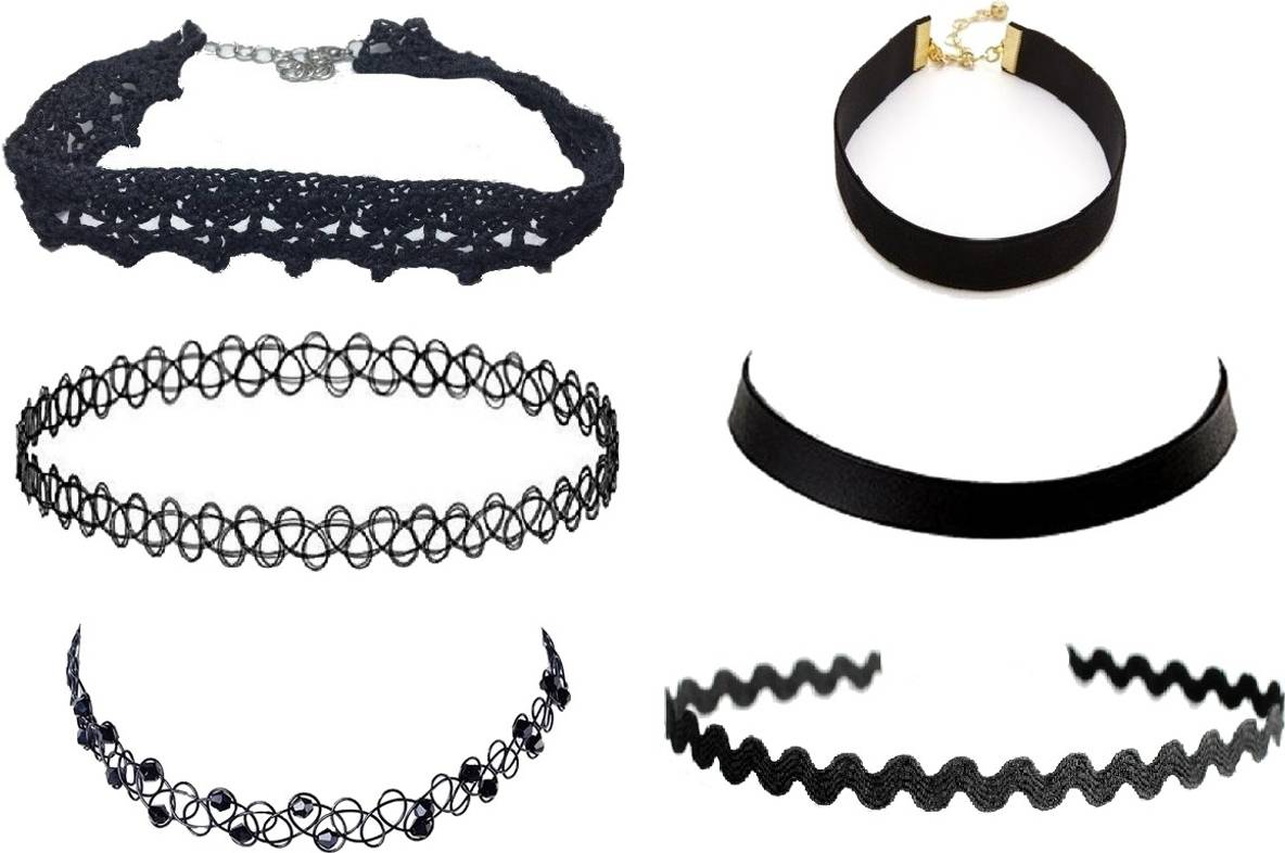 1 Fabric Choker, 1 Plastic Choker, 1 Plastic Beaded Choker, 1 Velvet Choker, 1 Leather Choker, 1 Fabric ZigZag Choker