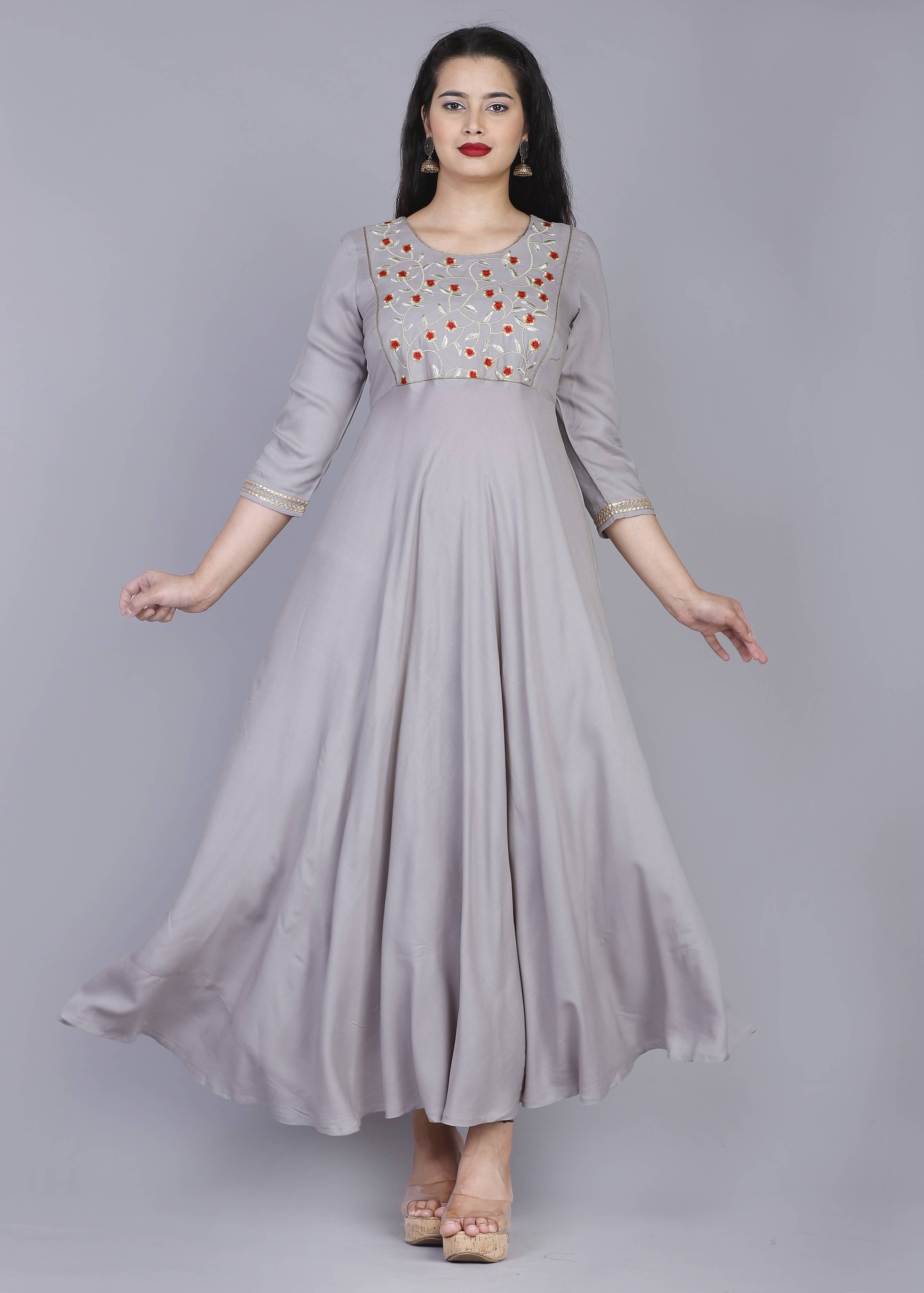 These Anarkali Kurti designs are adorned with elaborate embroidery using colourful threads along with gold and silver threads to create beautiful patterns.