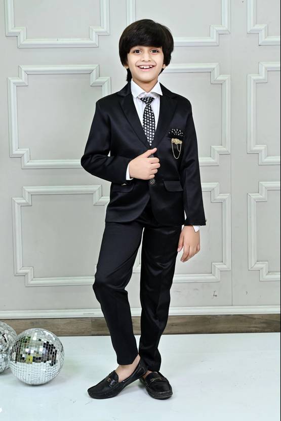 Dress your young one in style with this refined Boys Satin Fabric 4-Piece Coat Pant Suit Set. Tailored from smooth satin fabric, this elegant suit set includes a coat, trousers, shirt, and a coordinating tie — offering a complete formal look. Designed for both comfort and sophistication, it is ideal for weddings, parties, school functions, and other special occasions that call for a smart appearance.