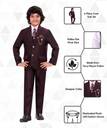 The shirt, coat, and waistcoat all come with button closures, which provide a secure and snug fit. The pants feature a partially elastic waistband with a button closure, ensuring a comfortable and adjustable fit for growing boys. Additionally, the pants come with a zipper fly closure, making it easy to put on and take off. These closures not only ensure practicality but also contribute to the polished and put-together look of the suit.
