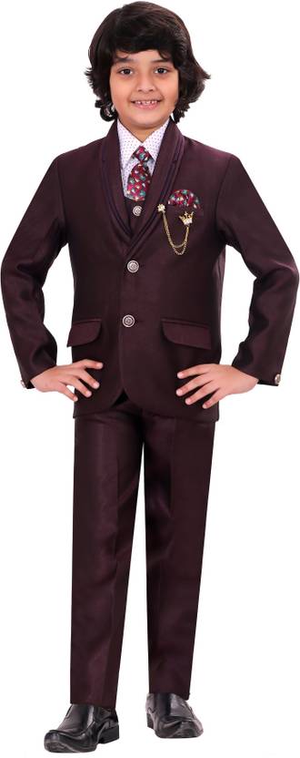BT DEZINES 5 Piece Coat Suit Set: Shirt Pants Blazer Waistcoat & Tie for Kids & Boys Solid Boys Suit
