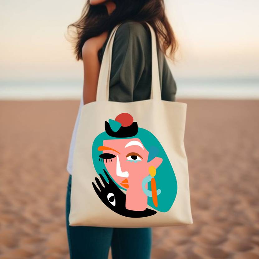 White Canvas Printed Tote Bag For Girl/ Women