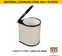 Capacity: 14 Litres , Cabinet Size: 400mm , Material: Stainless Steel 304 + Plastic , Mounted : Door Mounted (Fitted on Shutters) , Waste Bin Type: Auto Lid Waste Bin (These bins have automatic opening system for lids.) , Inner Plastic bucket can be easily pulled out. , Non toxic premium plastic used for long life. , Finish: Stainless Steel (Special stainless steel finish on outside.)