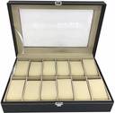 Leather Watch Storage Box with Finish and Glass Window Metal Lock with 12 Slots 30 x 20 x 8 cm, 1- Piece