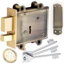 BUCKLER Iron Black Gold Antique Main Door Lock Set 100MM-8 Levers Double Turn,3 Keys Lock (Gold, Black)