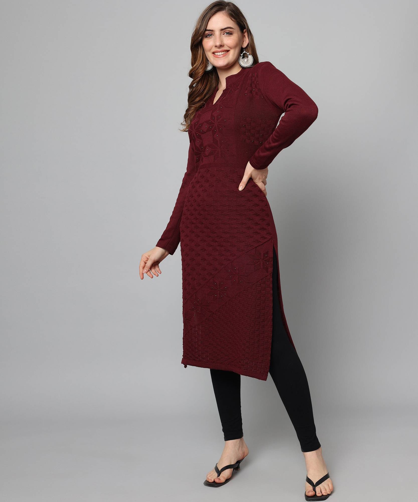 This Kurti is perfect for Formals / Casuals / Festive Occassions - Home Makers/ Professional Women / Teen Girls. This is made up of fine quality Rainbow yarn, which gives you a very elegant, warm n cozzy feel when you wear. Pair them up with smart denims or leggings?etc