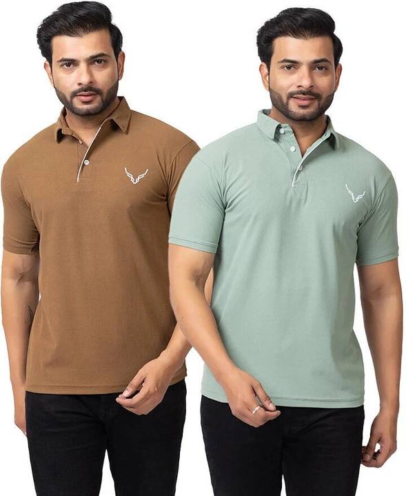 Pack of 2 Men Solid Polo Neck Polycotton Brown, Green T-Shirt