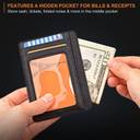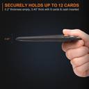 This product has ample space to store all your cards, tickets, and notes. With 7 card slots along with a cash pocket and an ID case, this cardholder can hold up to 12 cards. While these slots and pockets are made to a sufficient size to safely keep your belongings, the frictional texture of the cardholder prevents the stored items from falling.