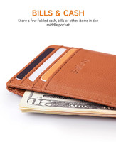 You may have some possessions of high importance that deserve an extra layer of safety. Keeping this in mind, a secret compartment has been added to this cardholder. While the two faces of the product have multiple pockets, a hidden section lies in the middle. Your sensitive cards and papers can safely stay here without getting lost or stolen.