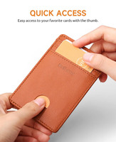 To make it easy to use, a few utility features have been added to the cardholder. The pockets have a special hole in their lower end, which can help you to easily access your favourite cards. You just have to push the card through this hole with your finger. There is a transparent compartment for easy access to your IDs.