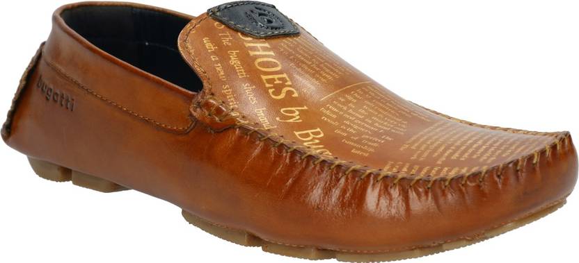 Style comes easy with this cognac bugatti driver loafers. A trendy shoe crafted in fine nappa leather, hand-finished to bring out the subtle tones in leather. With a printed upper carrying the bugatti name, and the comfort fit that bugatti is known for. Comes with the bugatti logo embossed on a leather label, and bears the fashionable used look. The latest, from the streets of Europe.