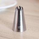 Ideal Biscuits Stainless Steel Icing Nozzle DIY Tools for Cookie, Cupcake and Cake Decorating.??The piping nozzles are Made of stainless steel. You can use it to create your own beautiful cakes and cookies. It contains swirls, rosettes, flowers, roping, stars, leaves and other designs. This set of piping nozzles includes 3 stainless steel icing nozzles tips.??Feature??Material: 304 Stainless Steel??Color: Silver??Package Weight: 50g??Usage Instructions??1. Clean your nozzle, wash in hot soapy water and dry. Prepare the piping bag, cut to allow the nozzle to pop out 1-2mm, then insert the nozzle into the bag.??2. Put the buttercream in a bag. Buttercream must be firm,room temperature, not too soft.??3. Place the nozzle to the cupcake/cake base,while squeezing gently,life nozzle.??4. Clean the end of the nozzle.??5. Use a leaf nozzle to fill in gaps--this will complement the overall effect.??6. If the buttercream is too soft the buds will be closed.Pop in the fridge,if necessary.??7. After use,wash in hot soap water and dry.??Durable and unique nozzle tips create variety of styles cakes, Appling a little pressure to get stunning designs in your cakes.