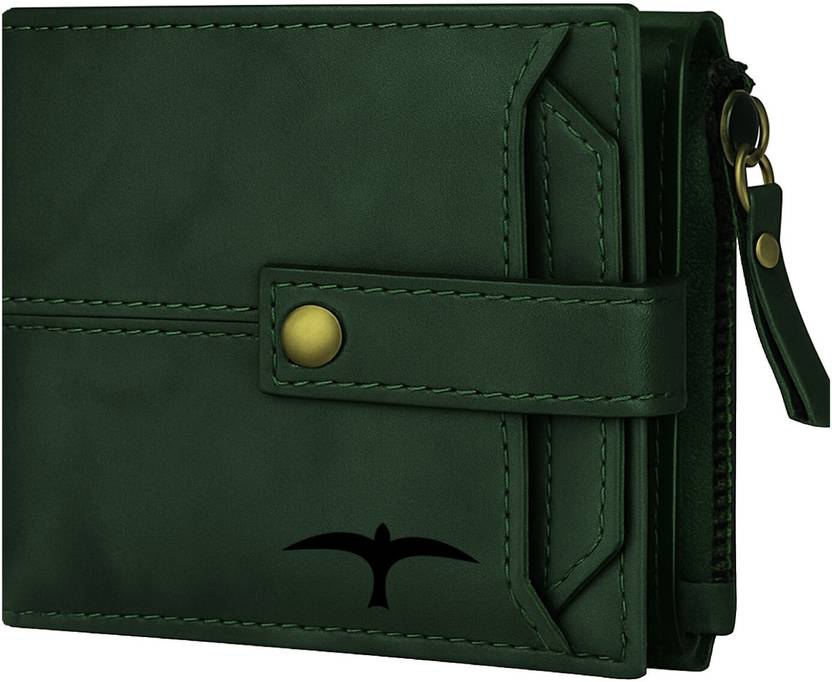 Green Leather Mens RFID Zipper Coin Pocket Purse | Mens Wallet