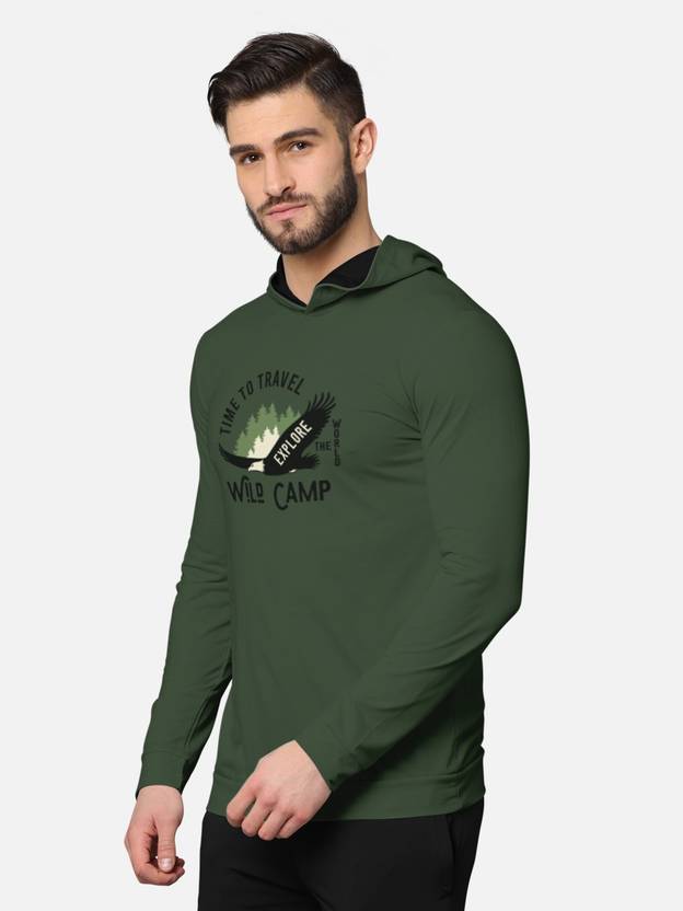 Bullmer Printed Men Hooded Neck Dark Green T-Shirt