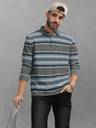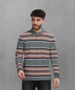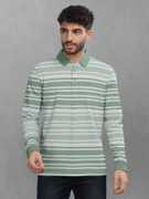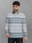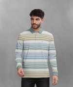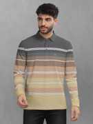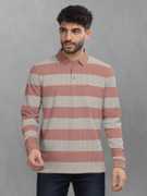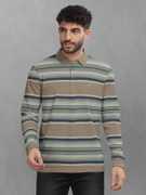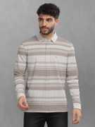 BULLMER Striped Textured Printed Polo Neck FullSleeve T-shirt With Rib For Men.Crafted from premium quality fabric, this t-shirt offers a unique blend of comfort and durability. The stylish striped pattern adds a modern touch with rib for stylish look while the textured print enhances its visual appeal, making it a standout piece in any wardrobe.The polo neck design gives a refined, semi-formal look, perfect for casual outings, weekend wear, or even semi-formal events. With full sleeves, this t-shirt provides a versatile option for all seasons, ensuring you stay stylish and comfortable, whether layered or worn on its own