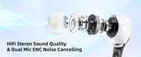 Courtesy of their high audio decoding rate, these earbuds produce high-resolution stereo sound to let you enjoy every beat in your favourite music tracks. With the intelligent ENC noise reduction technology, these earbuds offer crystal-clear audio with enhanced spatial audio features. With dual mic functionality, these earbuds ensure clear communication and high-quality sound reproduction for both music and calls. Thanks to its spatial audio features, these earbuds offer immersive 3D, 360-degree sound. Moreover, integrated with Bluetooth 5.3 technology, these earbuds ensure seamless connectivity.