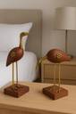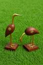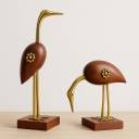 Bring elegance to your home with this pair of handcrafted wooden bird figurines. Designed with smooth wooden bodies and fine brass detailing, these sculptures make a perfect tabletop or shelf decor piece, adding a touch of charm and sophistication to any space.