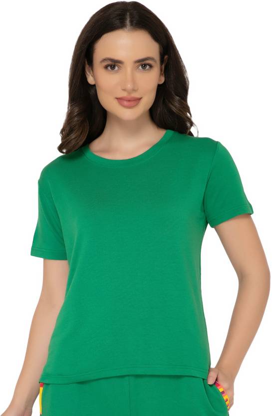 Bummer Relaxed Fit Micromodal Half Sleeve Women Solid Round Neck Modal Green T-Shirt
